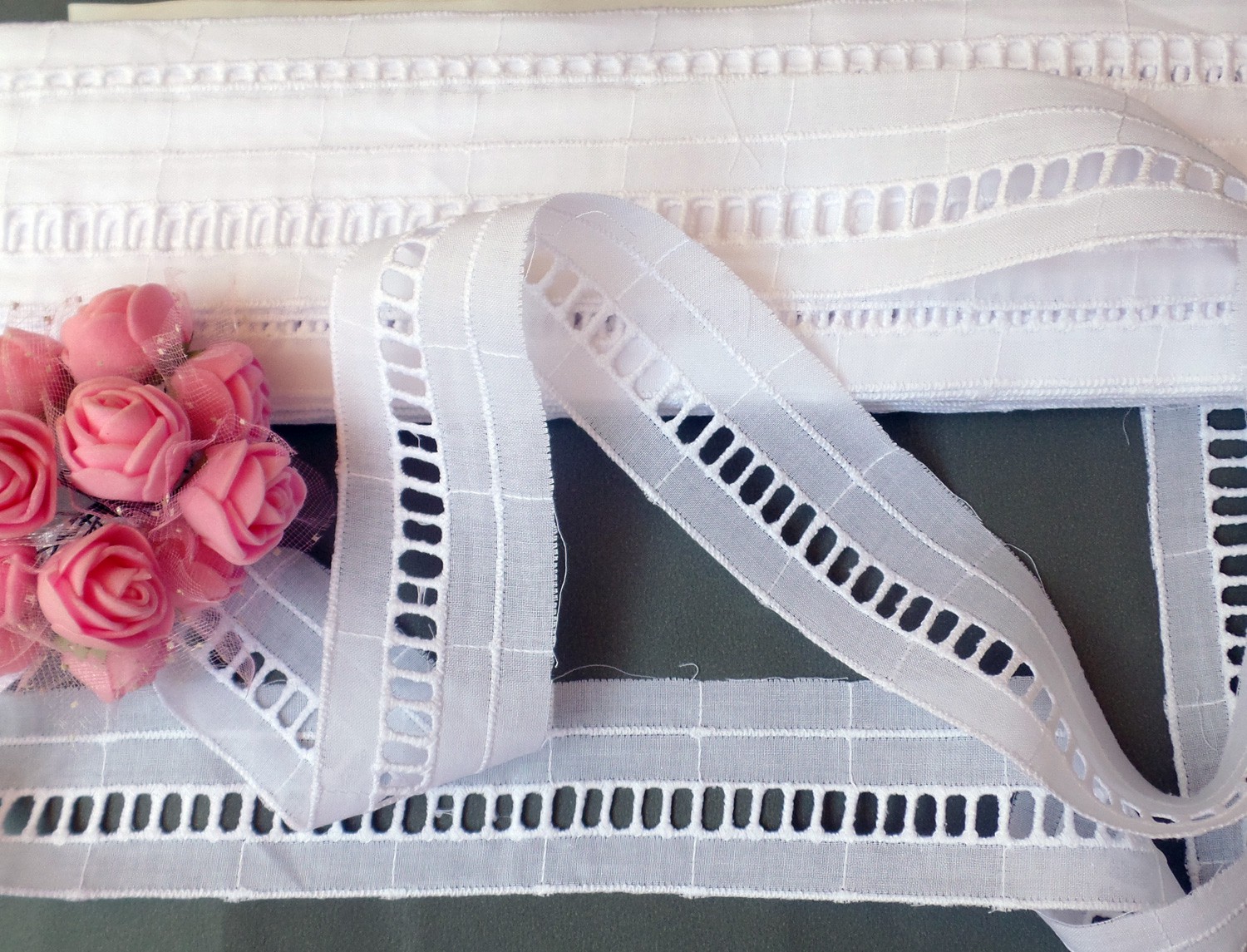 Lindo ponto palito Bordado Inglês 100% algodão branco.