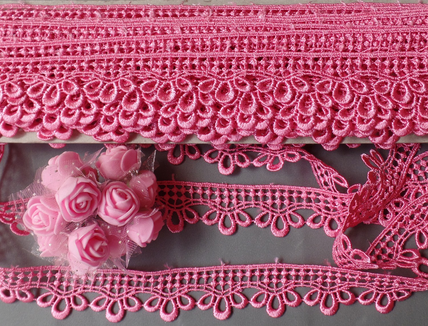 Lindo Guipure em 100% Poliéster Rosa Chiclete.